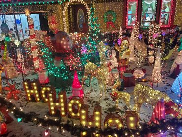 We are The House of Christmas Cheer, showcasing Naperville's best holiday lights display with tens of thousands of lights , hundreds of illuminated figures, and dozens of ever changing vintage animated displays as seen in store fronts of old. Leave the modern light shows behind and enjoy a classic Christmas with us, our family, and friends. Don't be surprised if you see Santa hanging out at his favorite place south of the North Pole. Merry Christmas to all, and to all, a good night!